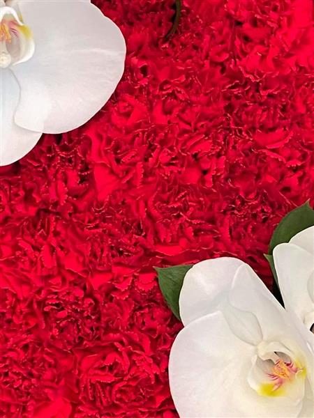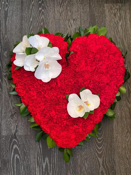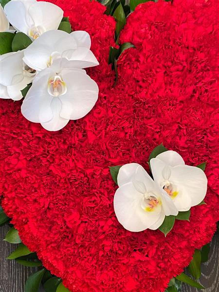 A heart massed in red carnation