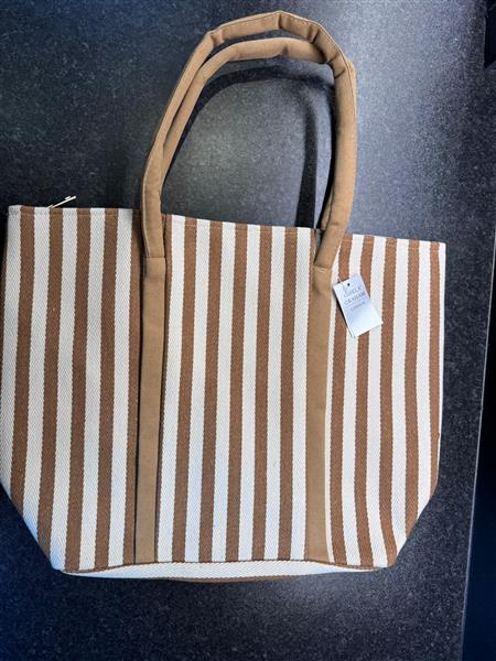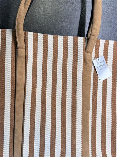 Brown Vertical Striped Canvas Shopper Bag zoom 2Brown Vertical Striped Canvas Shopper Bag zoom 3