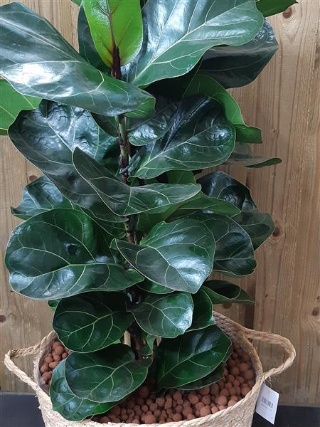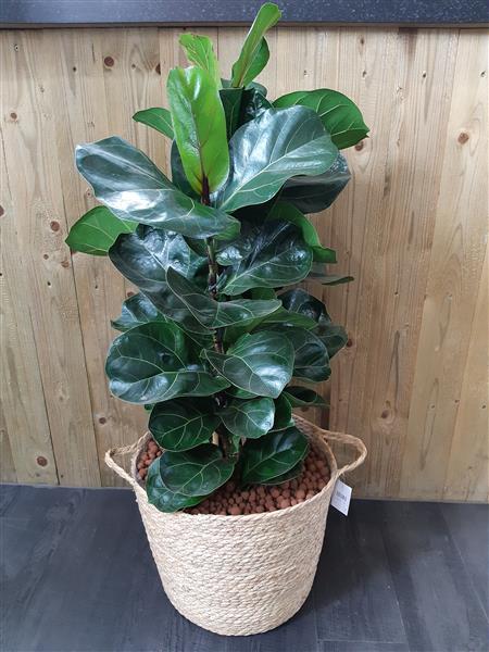 Also known as Fiddle Fig Tree. Planted in a Gisela Graham wicker basket. Overall height is just over 3ft