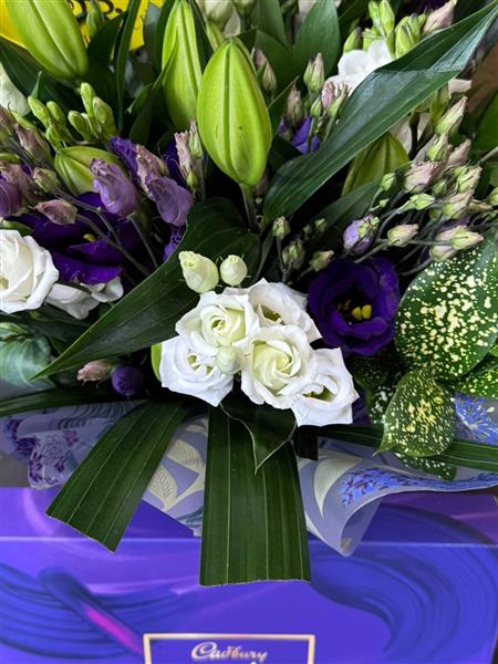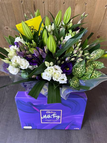 A Grandeur hand tied in water with a large box of Cadbury Milk Tray chocolate