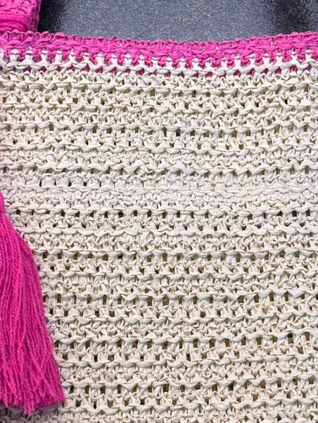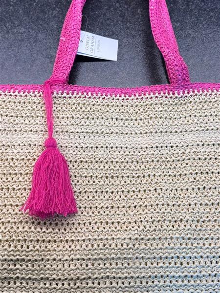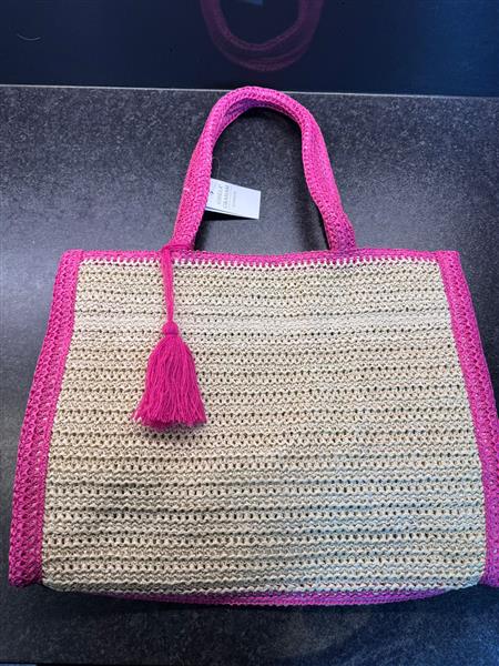 Hot Pink Accent Woven Shopping Bag  zoom 2Hot Pink Accent Woven Shopping Bag  zoom 3
