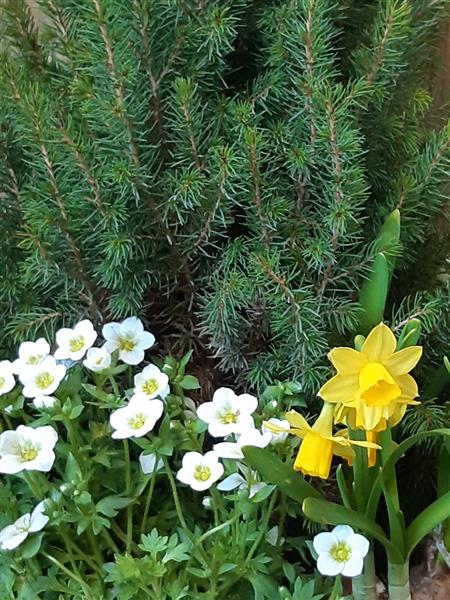 A seasonal spring planter in a Zinc container (colours and varieties may change)