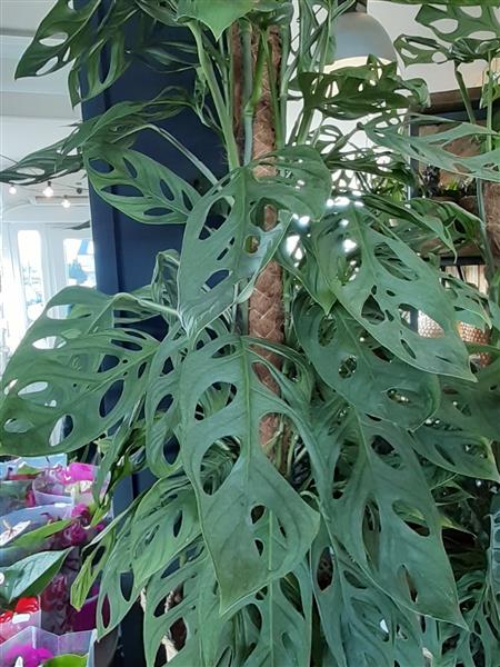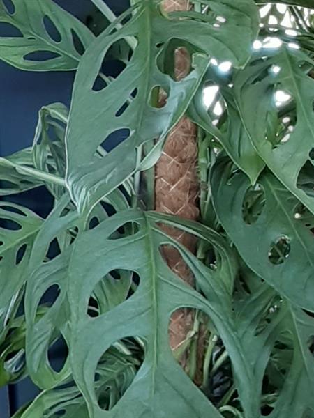 Monstera Plant on Moss Pole in wicker pot zoom 2Monstera Plant on Moss Pole in wicker pot zoom 3