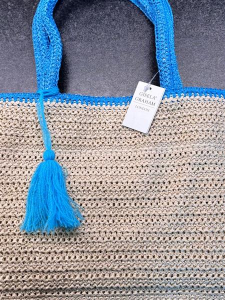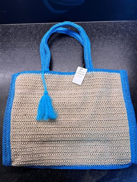 Turquoise Accent Woven Shopping Bag zoom 2Turquoise Accent Woven Shopping Bag zoom 3